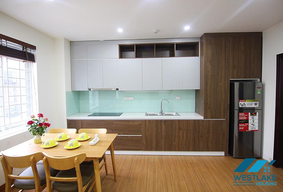 A nice and clean 1 bedroom apartment in Vu mien, Tay ho. With the size of 60 sq m, the apartment including one bedroom, one bathroom, open living room, kitchen and dining area. It is modern and full of natural light, and fully furnished with Western styled furniture.