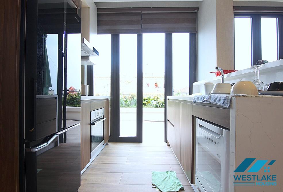 A brilliant 1 bedroom apartment for rent in Tay Ho. Are you looking for an apartment but also having your own terrace? You want to savor the breathtaking view of the Westlake from a height? So this is exactly what’s for you – A 95sqm- in- total-apartment is located on the top floor of a by-side-the-Lake-building with completely-furnished furniture provided, beautiful design and good-sized balcony. Don’t hesitate to call us for a viewing
