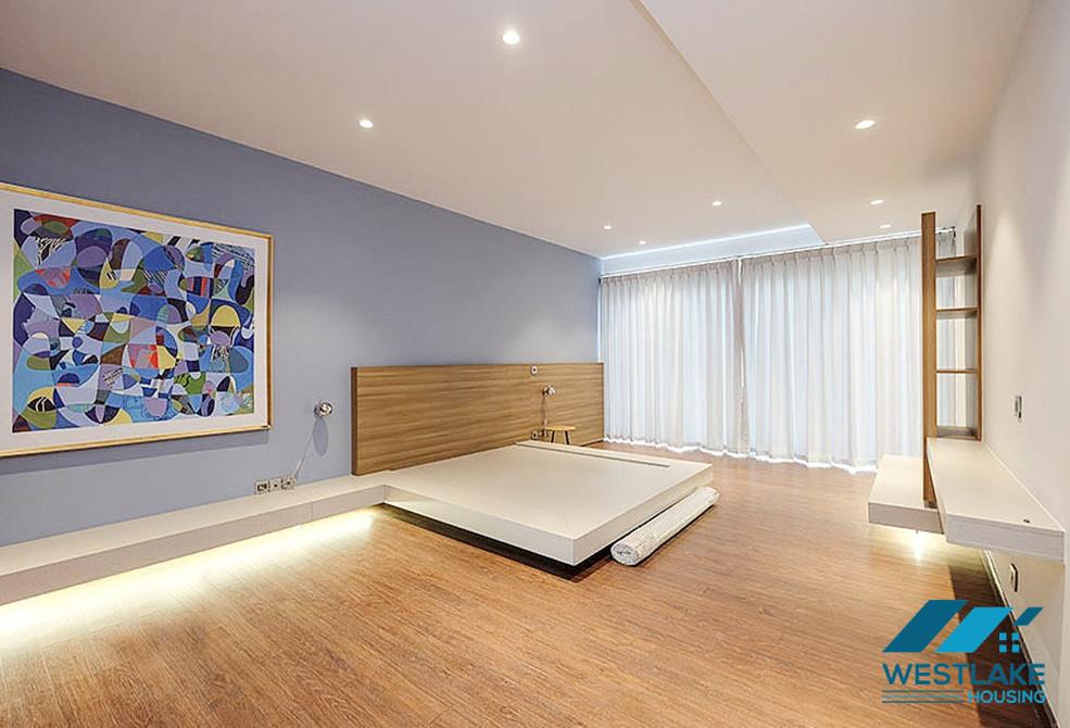 A modern villa with lot of natural light for rent in Tay Ho, Ha Noi. The house has a small court yard, large living room, modern and nice kitchen, 4 bedrooms and 4 bathrooms with...