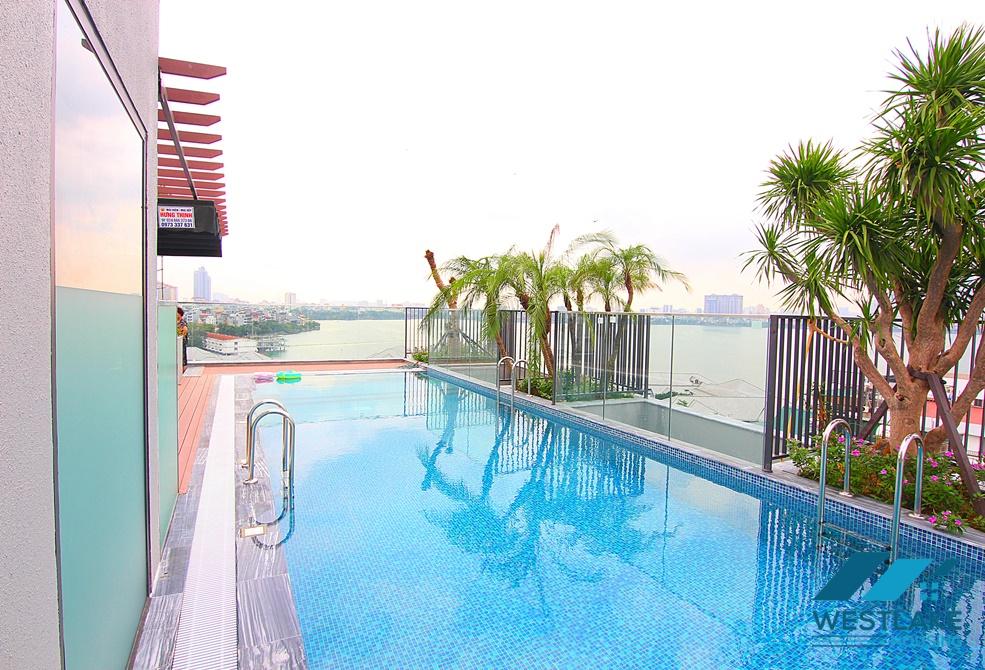 A fabulous 02 bedrooms apartment on good quality building for rent on Tu Hoa Street, Tay Ho District. The total living space of the property is 100 sqm. Full good quality interior decorated for a spacious lovely living room, 2 bedroom, 2 bathroom and a lovely kitchen. It has outdoor swimming pool on the top floor and breaking view rooftop which is open to any tenants. There are full amenities nearby like restaurant, coffee shops, gym, etc.