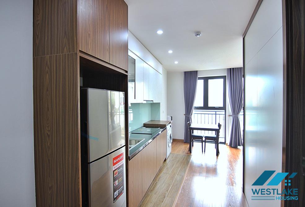 A Super Brand-new modern 1 bedroom apartment for rent in Trinh cong son,Tay ho. The total living space is 45sqm, with nice living room, 1 bedroom and 1 bathroom. It is fully furnished with modern and good quality furnitures.It is highlighted by the large glass window and an lovely balcony with the spectacular view. A lot of amenities is nearby.