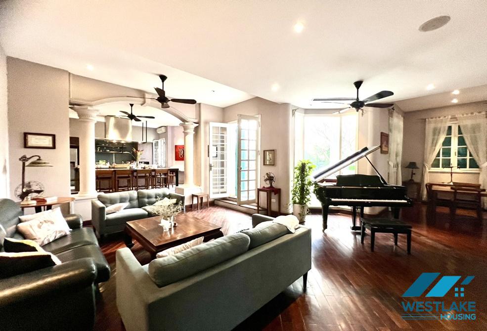 This charming classic style villa for rent is located in Long Bien district,near Hoan Kiem and Tay Ho ,less than 5 minutes by car .On a land area of 1400 m2 , combined with views of the Red Rive .The house has been completely renovated,especially the kitchen,and all bathrooms.There is a second kitchen ,perfect for preparing receptions for over 40 people. The villa is the perfect place for Ambassadors or diplomats to hold many receptions.So call us now for more information