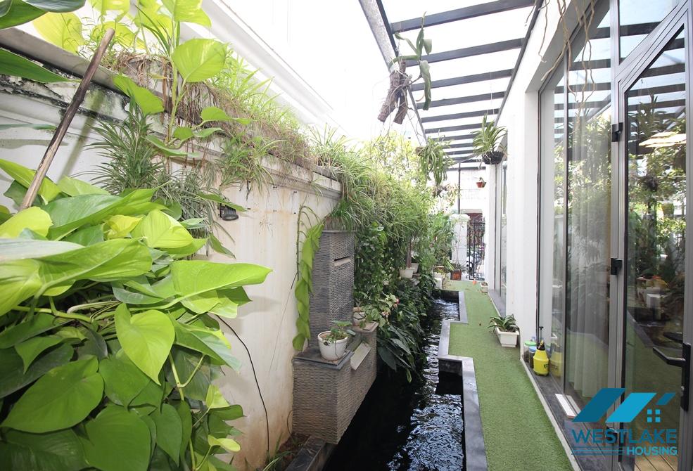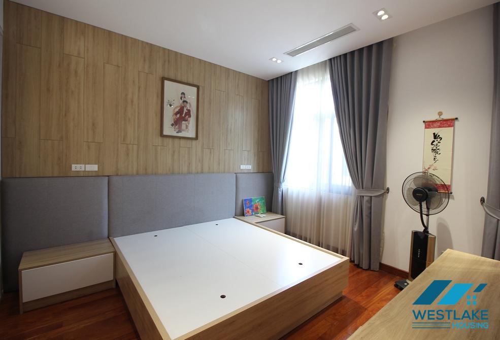 A charming house for rent in Nguyet Que block, Vinhome Riverside with a small courtyard and green garden in the front. With property area of 189 sqm, the house is well designed and equiped with high end furniture, 4 bedrooms, 4 bathrooms, nice living room combine with opened kitchen.