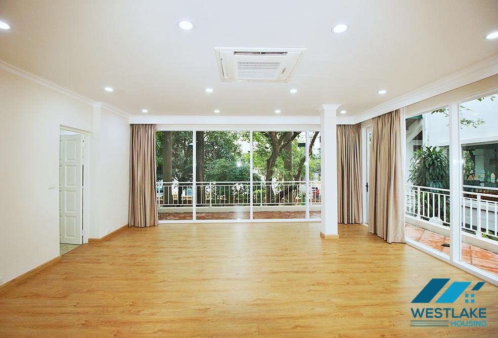 Fully serviced and spacious villa for rent in Tay Ho, Ha Noi. The land size of 700sqm and construction is 280sqm x 2 floors. This villa could be flexible for the furnitures (furnished or unfurnished). It's perfect for the diplomat, the rent included: VAT, cleaning services, breakfast, 4 million dongs per month for electricity and water bills, gym and pool. Located on center of Tay Ho, take a few minutes to the lake, restaurants, shops, etc. Call us for more details!
