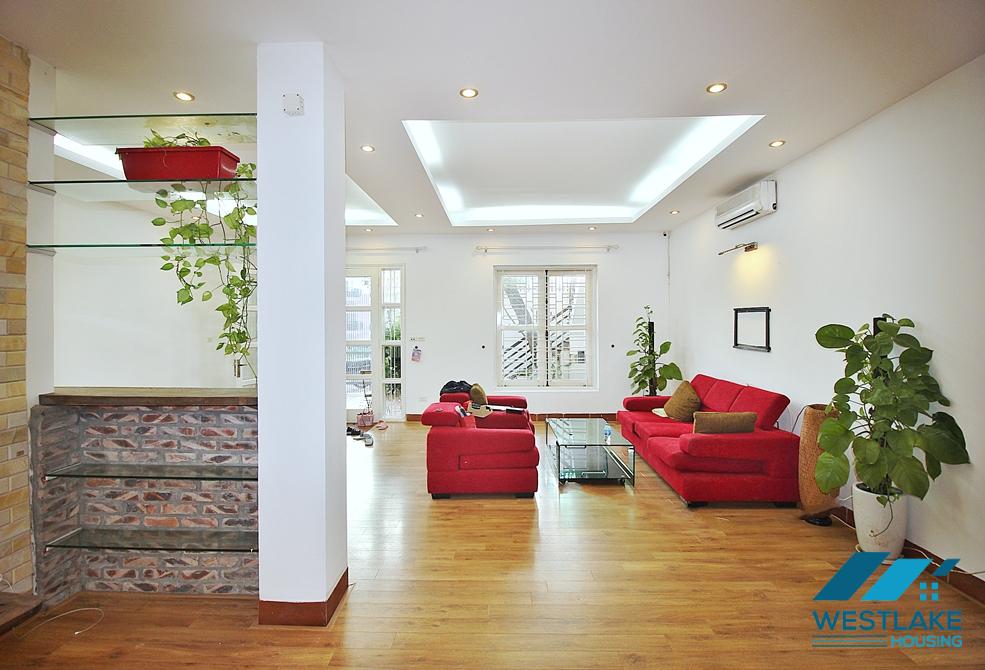 A spacious and cheap 4 bedroom house for rent in Dang Thai Mai, Tay Ho. Fully equiped with modern furniture. It has a large sky terrace on the top, imagine sunbathing or chilling...