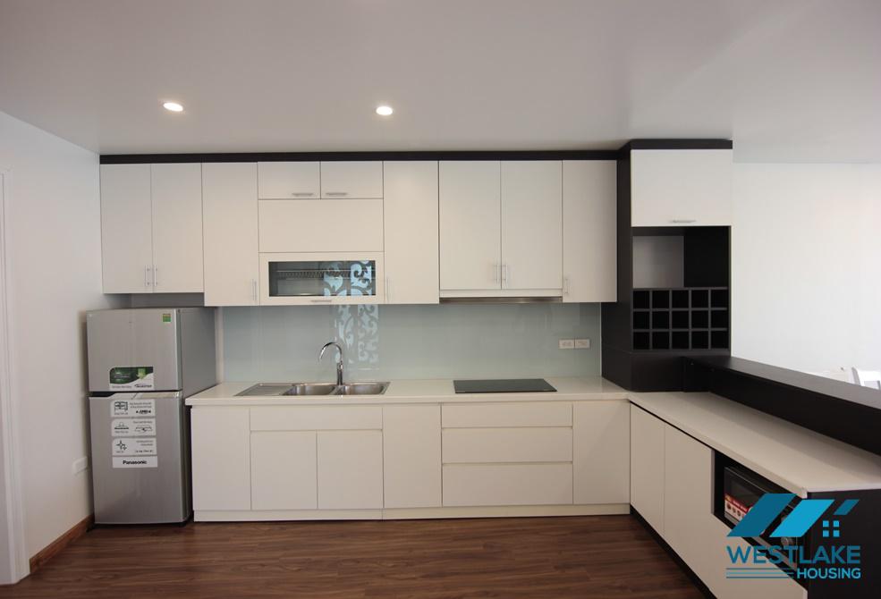 Modern apartment for rent in Yen Phu area, which includes 2 bedrooms, 2 bathrooms opened kitchen and dining room, spacious living room, big balcony provides beautiful lake and city view. Apartment fully furnished with modern furniture.