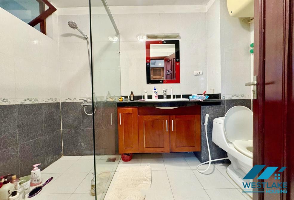 Cho Thuê nhà 4 phòng ngủ nằm trên phố Tây Hồ, Hà Nội. Diện tích đất 120m2, diên tích sử dụng 360m2, có 4 phòng ngủ, 4 phong tắm, ban công thoáng mát, ánh sáng tự nhiên tốt, phòng khách rộng, thiết kế mở, bếp hiện đại, đầy đủ tiện nghi: tủ lạnh lớn, lò nướng, v.v. Nhà có sân vườn, sân thượng. Vị trí đẹp, trong hẻm yên tĩnh, gần Hồ Tây, Trường học, Somerset, nhà hàng, quán cà phê, v.v.